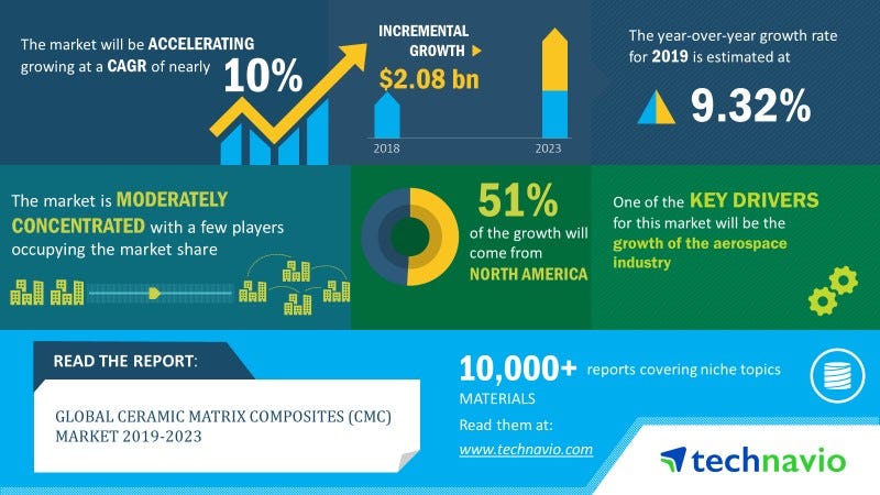 Also, growing investments in the defense sector will positively influence the adoption of CMC especially in the manufacture of military aircraft and helicopter engine components. The application of CMC in military aircraft boosts fuel efficiency, minimizes maintenance costs, and helps in achieving power-to-weight ratio. CMCs are also being used to upgrade existing engines, which will further increase the demand for CMC form the defense industry. This will drive ceramic matrix composites market growth at a CAGR of almost 10% during the forecast period.